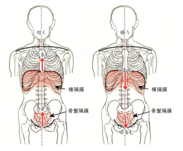 腸が柔らかくなり動きやすくなると、腸の上にある(正確には肝臓や胃の上にある)横隔膜が上下に動きやすくなります。